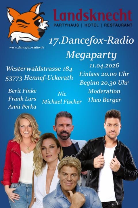 11. April 2026Westerwaldstraße 184, 53773 HennefDancefox Radio MegaParty